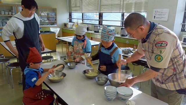 1/11(日)にビーバー隊は、今年最初の活動は津田市民センター料理室で、『餅つき体験』をおこないました。